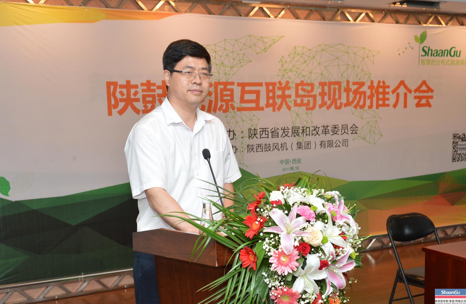省工信厅总工程师崔跃民在讲话中表示,陕鼓是省内转型升级发展的示范企业,目前,服务与运用板块占到总订货量的一半以上。此次揭幕仪式也是陕鼓转型战略发展的里程碑。陕鼓能源互联岛全球运营中心项目,已列为陕西省重点技术改造项目,并完成了一期项目任务,对此表示祝贺。他讲到,工信厅要加快产业链、创新链的建设,支持新产业领域的发展,支持陕鼓分布式能源项目,使其从陕西尽快走向全球。