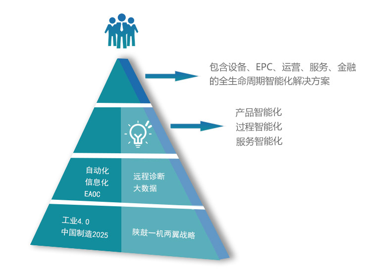 结合智能化趋势和数字化智能工厂要求,陕鼓可为客户提供一系列智能化服务。EAOC智能系统( EAOC- EMAES、EAOC-APP等)包含机组状态监测、能源管理及公共设施监测、厂节能减排提质增效等。
